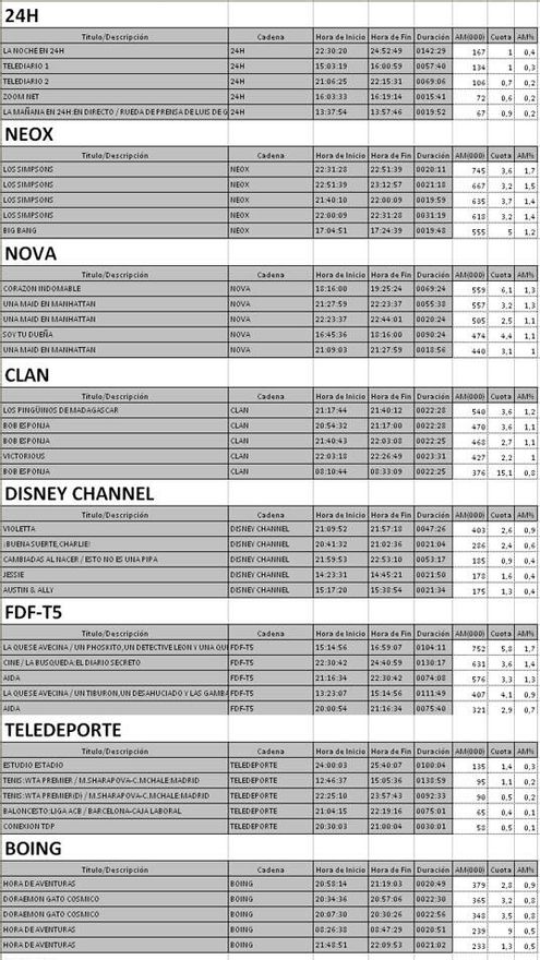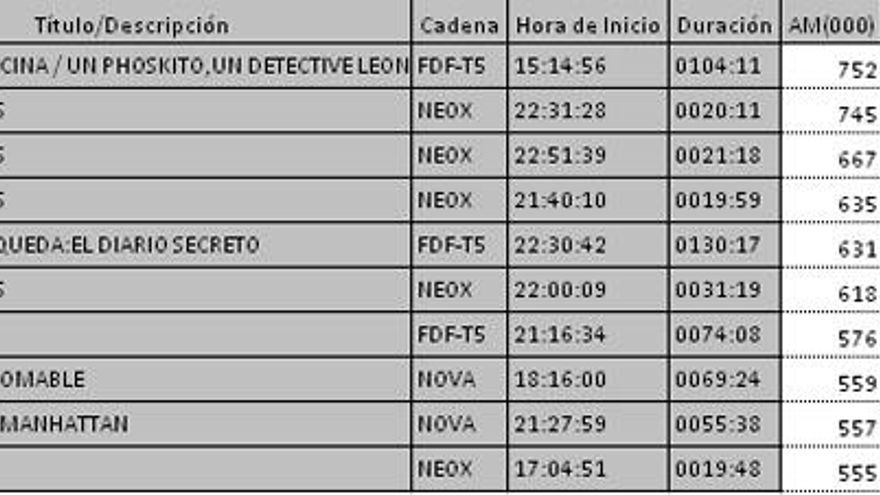 Top5 programas más vistos por cadenas