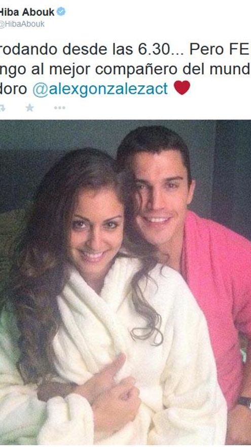 Abouk ha compartido con sus seguidores en Twitter una foto en albornoz con su “amor prohibido” en la ficción, Álex González, añadiendo además que llevaban rodando desde una hora para muchos todavía intempestiva, las 6:30 horas de la mañana, “¡pero feliz porque tengo al mejor compañero del mundo! Te adoro”.