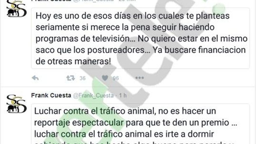 En el primero, introducía: “Luchar contra el tráfico animal, no es hacer un reportaje espectacular para que te den un premio... luchar contra el tráfico animal es irte a dormir sabiendo que has hecho algo bueno para pararlo y despertarte por la mañana sabiendo que ese día puede ser tu ultimo día... NO NOS EQUIVOQUEMOS!!!!”.