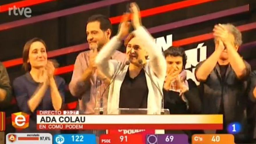 Ada Colau aparecía exultante en todas las cadenas y gritaba: “Orgullo de candidatura, de comunicación, de que hemos ganado y digámoslo muy fuerte”