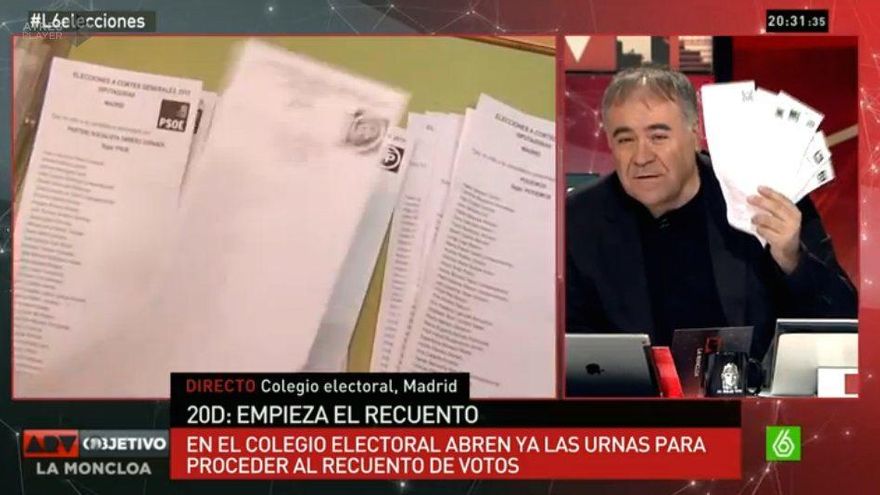 Por primera vez, laSexta también entraba a uno de los colegios electorales y mostraba cómo se contaban los votos. Además, en las imágenes se veía cómo los partidos tenían más o menos altura.