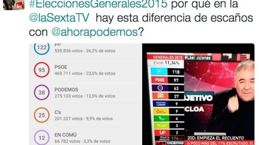 Como siempre, los espectadores y usuarios de Twitter detectan muchas más erratas, anécdotas y hacen comentarios ingeniosos en las redes. A continuación publicamos algunos de los tuits más interesantes sobre la cobertura de las elecciones por las cadenas: