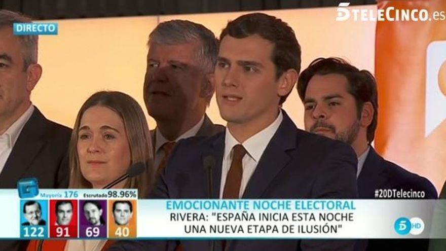 El líder de Ciudadanos comparecía para hablar de la gran labor que tenían por delante: “España inicia esta noche una nueva etapa de ilusión. Tenemos una gran labor por delante, pero nadie como nosotros pensará en España como nosotros. Queremos mucho a Ciudadanos pero queremos más a España”.