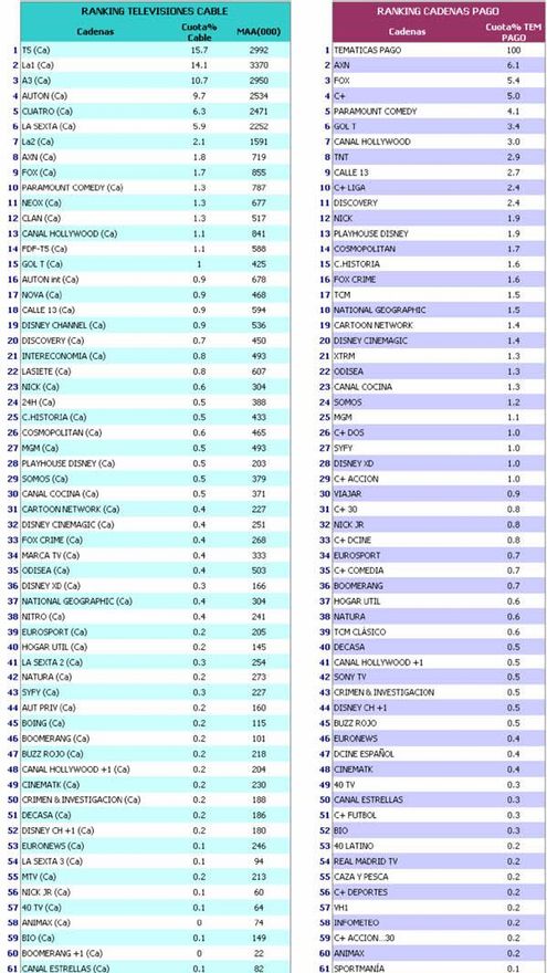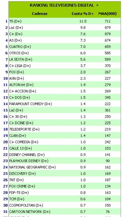 30.- Máximo de la TDT con una cuota del 79,9%