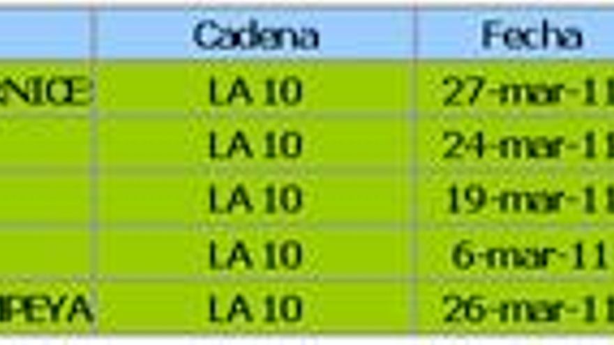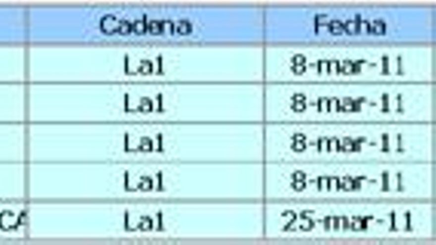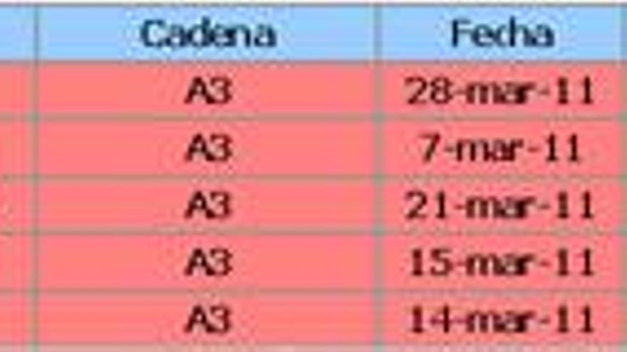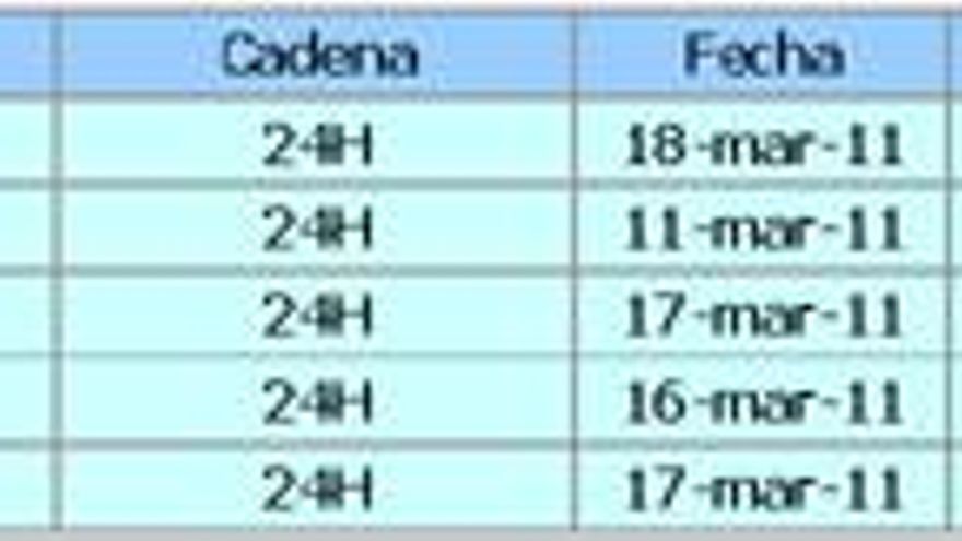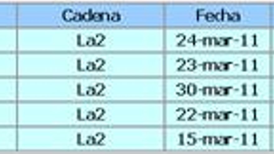 3.-TELEDIARIO 2 / 08.03.11 (La1) – 8.121.000 – 38,7%