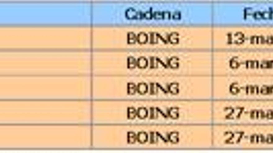 Por segundo mes consecutivo, la cadena infantil de Telecinco, Boing, sube una décima para alcanzar su máximo mensual con el 0,9%. Y en el grupo de niños de 4 a 12 años la cadena firma un 6,4% de cuota de pantalla, grupo donde muestra el mayor crecimiento. Los programas más vistos de la cadena son “Looney Tunes”, “Merrie Melodies” y “Agallas, el perro cobarde”.