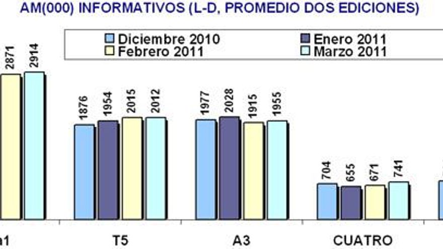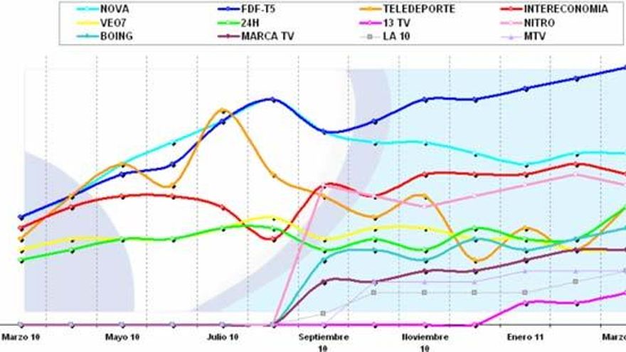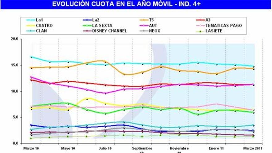 Marzo 2011, gracias a la fragmentación de la audiencia, ha sido el mes con la cuota más baja para alcanzar el liderazgo (14,8%) en la historia televisiva de nuestro país.