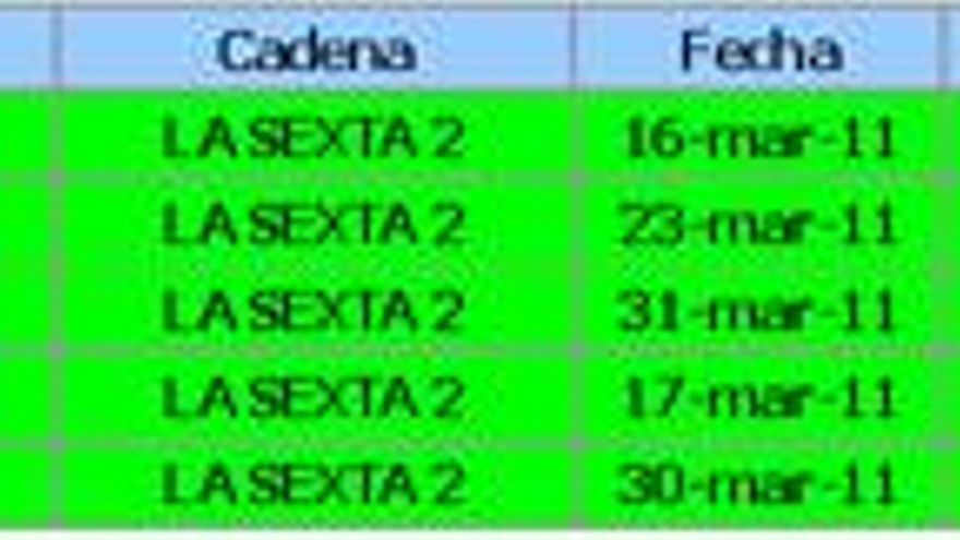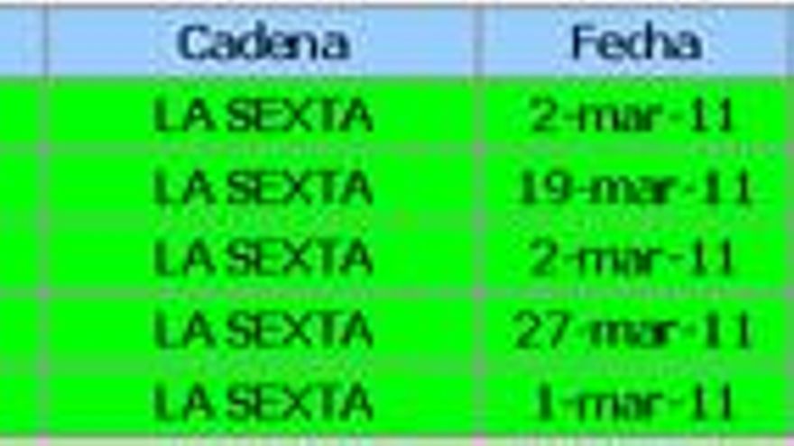 laSexta (6,0%) reduce su cuota en tres décimas respecto a febrero. Presenta un perfil cualitativo claramente masculino, adulto joven (individuos entre 25 y 44 años) y de carácter muy comercial. Deporte y ficción se consolidan como las grandes bazas de la cadena, que encuentra su pico máximo del mes el día 2 con la emisión del encuentro liguero entre el Valencia y el F.C.Barcelona (5.927.000 espectadores y 28,7% de cuota). Fórmula 1 y cine comercial (“El taquillazo”) completan los primeros puestos de la tabla de espacios más vistos del mes.