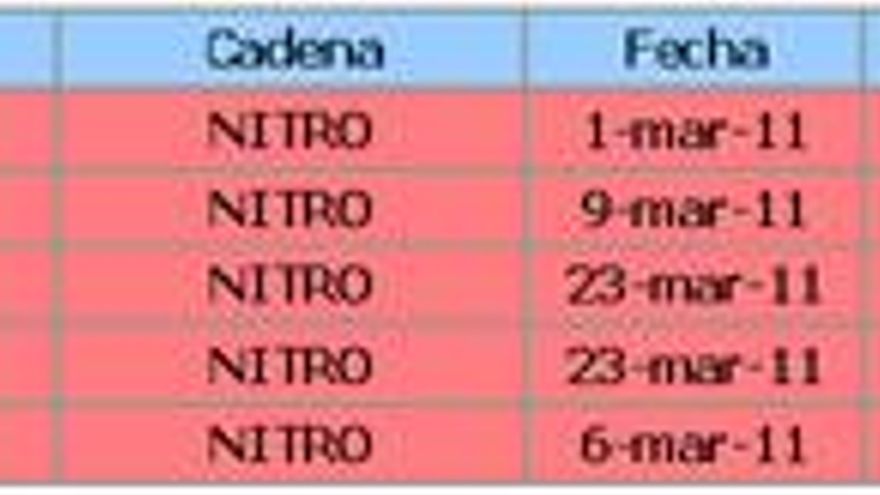 Nitro, cadena de ficción de Antena 3 firma un 1,3% de cuota de pantalla, una décima menos que el mes pasado. El perfil de su audiencia se escora hacia los hombres y hacia los mayores de 45 años. El ránking de programas de la cadena está encabezado por “Sin Rastro”, “1000 maneras de Vivir” y “Nitrocine”.