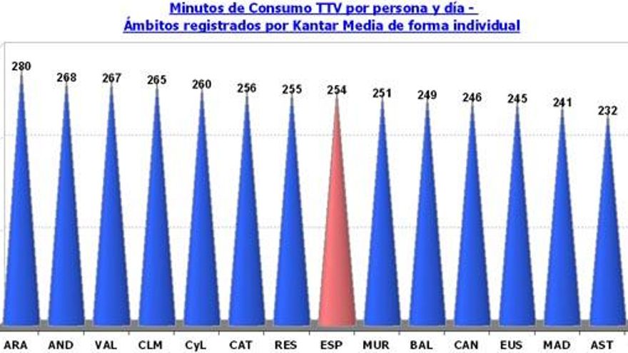 Es el mes de marzo que de promedio más tiempo ha pasado cada español viendo televisión, con una media diaria de 254 minutos, mismo dato que en el mes de febrero, y 12 minutos más que en marzo del 2010.