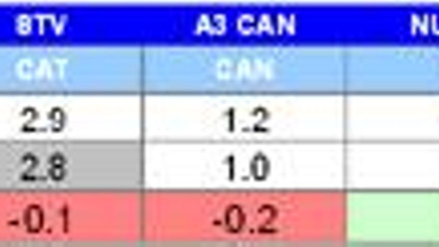 El grupo de Autonómicas Públicas (11,3%) sube dos décimas con respecto al mes anterior. La catalana TV3, líder en su ámbito, sube ocho décimas y es de nuevo la autonómica con mayor cuota del grupo (15.3%). Además de TV3, destacan los avances experimentados por la asturiana TPA (cuatro décimas), la valenciana C9 (cuatro), la andaluza Canal Sur (tres) y la aragonesa ATV (tres).