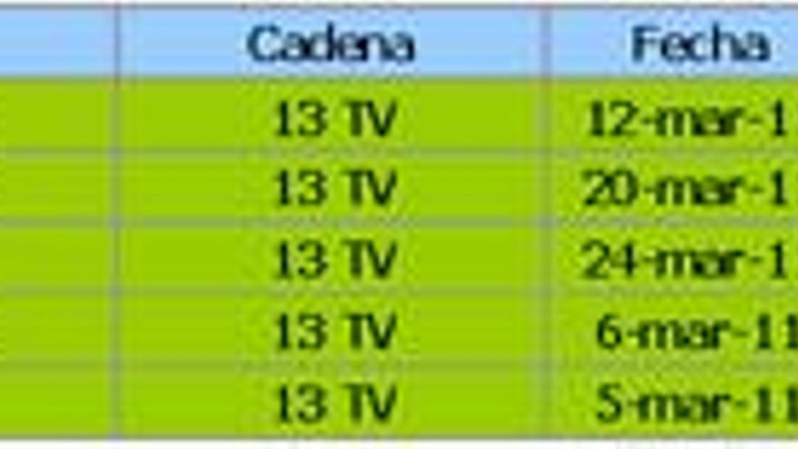 En su tercer mes en emisión, 13TV (0,3%) sube una décima, lo que supone el mejor resultado de la cadena. Por franjas horarias, muestra sus mejores resultados en la franja de tarde, donde promedia un 0,4% de cuota de pantalla. Su perfil es regular en cuanto a sexos y con plusvalías en mayores de 45 años. La emisión más vista de la cadena corresponde al cine, con el título “Hijos de un mismo Dios”, con 113.000 espectadores de audiencia media y 0,9% de cuota de pantalla.
