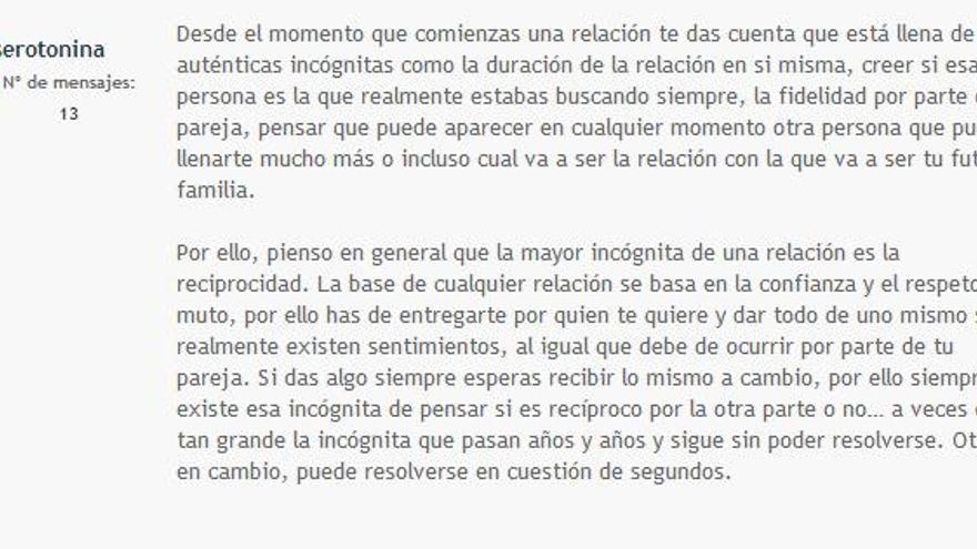 Y es que, como dice Mayca69 “es una incógnita toda ella” (hablando de la relación de pareja).