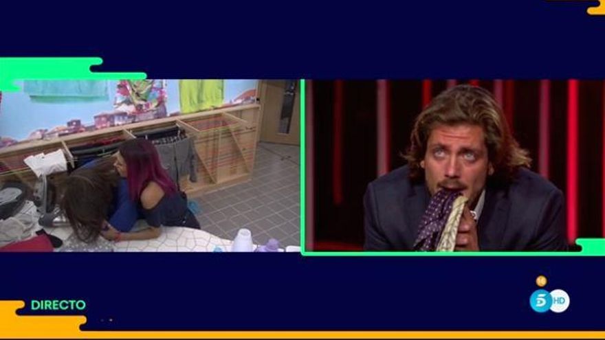 Él se quedaba tranquilo, mientras las otras dos daban las gracias al público. Cuando entraban en la casa salvadas, él veía las imágenes de la reacción del resto de compañeros y en concreto de Clara que quedaba destrozada.