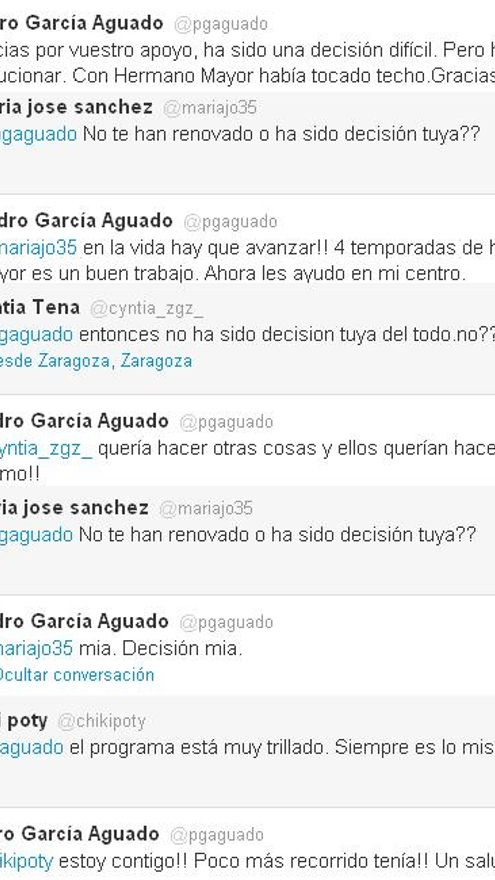 Las razones de su marcha, las dejó entrever el propio Pedro García Aguado en su Twitter. “Ha sido una decisión difícil pero hay que evolucionar. Con Hermano Mayor había tocado techo”. “Quería hacer otras cosas y ellos querían hacer siempre lo mismo”.