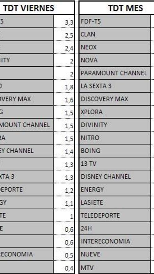 Los 10 programas más vistos en la TDT del viernes 24 de enero