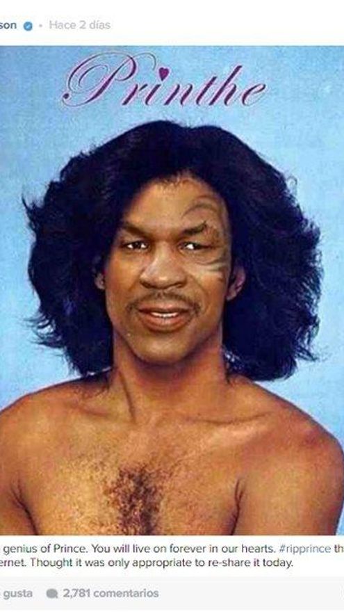 Entre todos los mensajes compartidos a través de las redes sociales, sin embargo, el que más ha destacado ha sido el de Mike Tyson. El exboxeador y también actor compartió un extraño montaje fotográfico para llorar la muerte del cantante, en el que reemplazaba el rostro de este por el suyo propio. “He pensado que sería apropiado compartirla otra vez hoy”, dijo en Instagram.