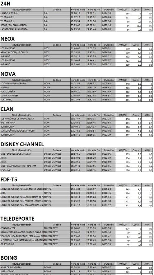 Audiencias TDT 25/06/2014