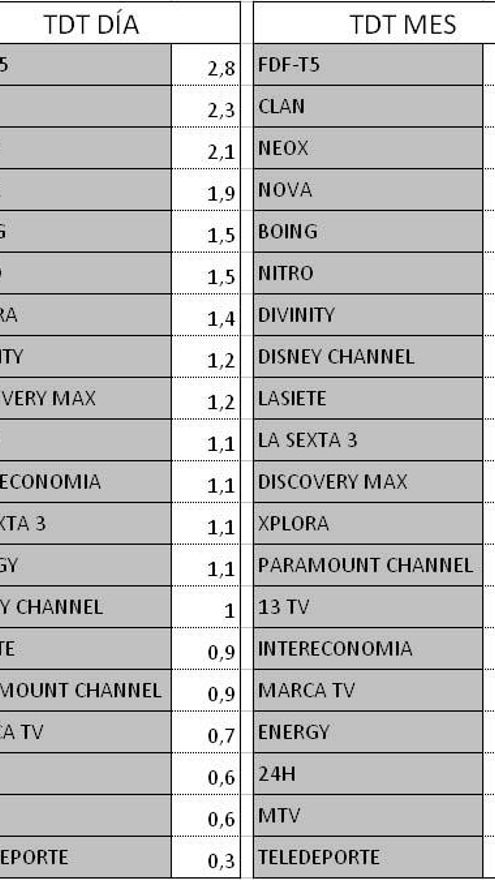Audiencias TDT y Forta