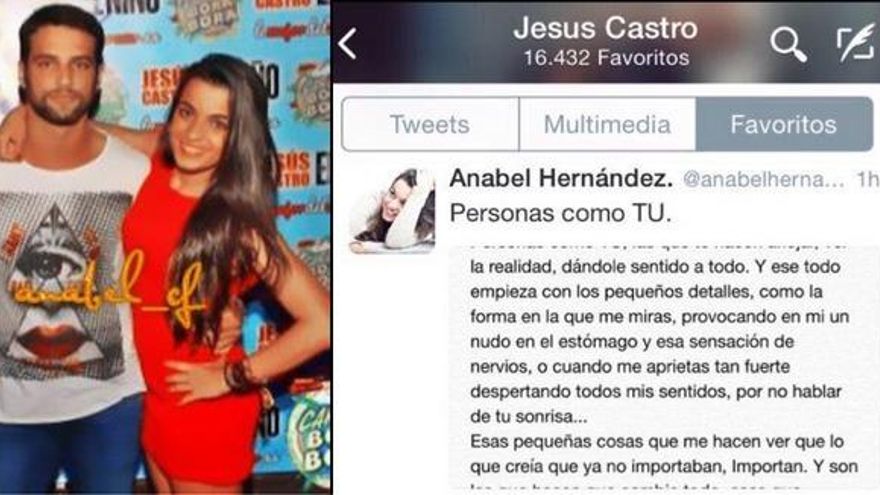 Estas palabras hicieron saltar las alarmas entre los seguidores de la pareja y muchos apuntaron a que ese “actor” del que Cristian hablaba era Jesús Castro. Kiko Hernández así lo insinuó en 'Sálvame' y es que hay razones para sospechar sobre la relación entre la pretendienta y el actor de moda: ambos se siguen por Twitter, hay fotos de los dos y los últimos mensajes románticos que ha escrito ella, Castro los ha marcado como favorito.