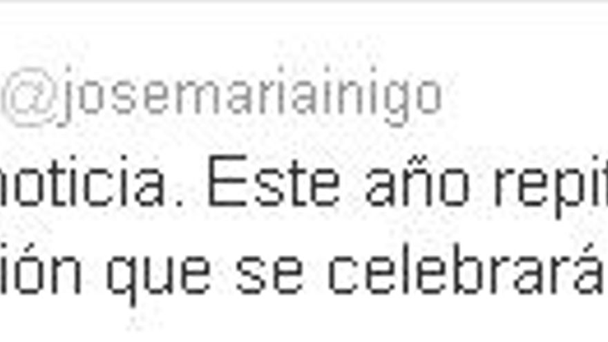 José María Íñigo será de nuevo el encargado este año de comentar el Festival de Eurovisión 2012 que se celebrará en Bakú del 22 al 26 de mayo, informa la cadena pública en una nota. “Por fin una buena noticia. Este año repito en Eurovisión”, ha dicho el periodista a través de su cuenta en Twitter.