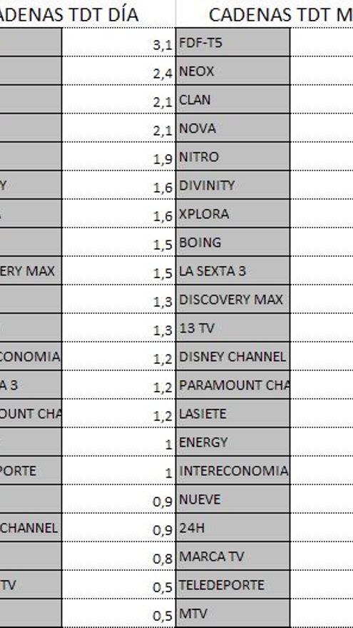 Audiencias TDT y Forta