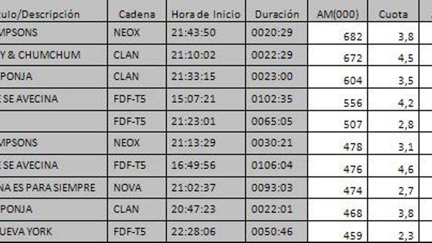 Los 10 programas más vistos del día en la TDT