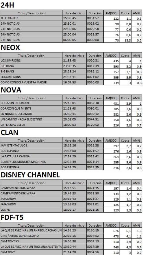 Audiencias completas nuevas cadenas de la TDT