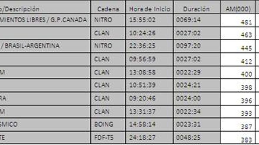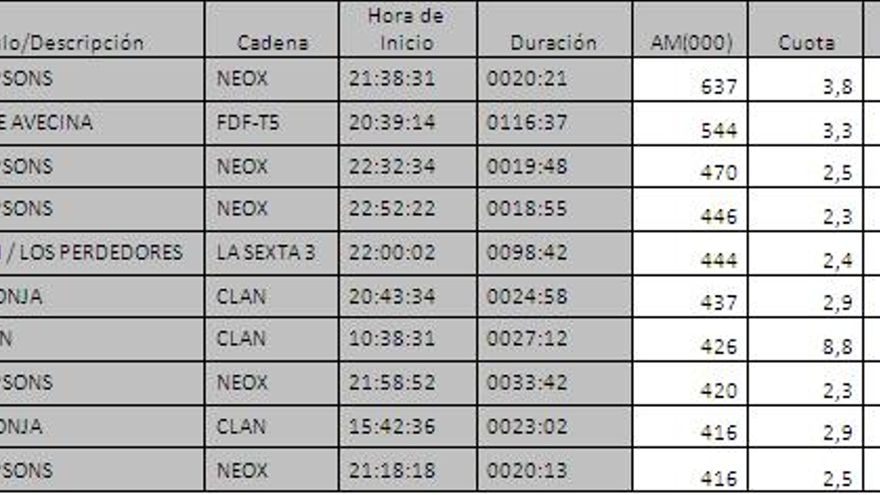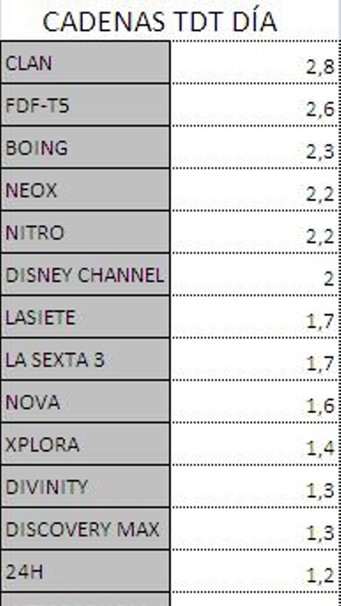 Los 10 programas más vistos del día en la TDT