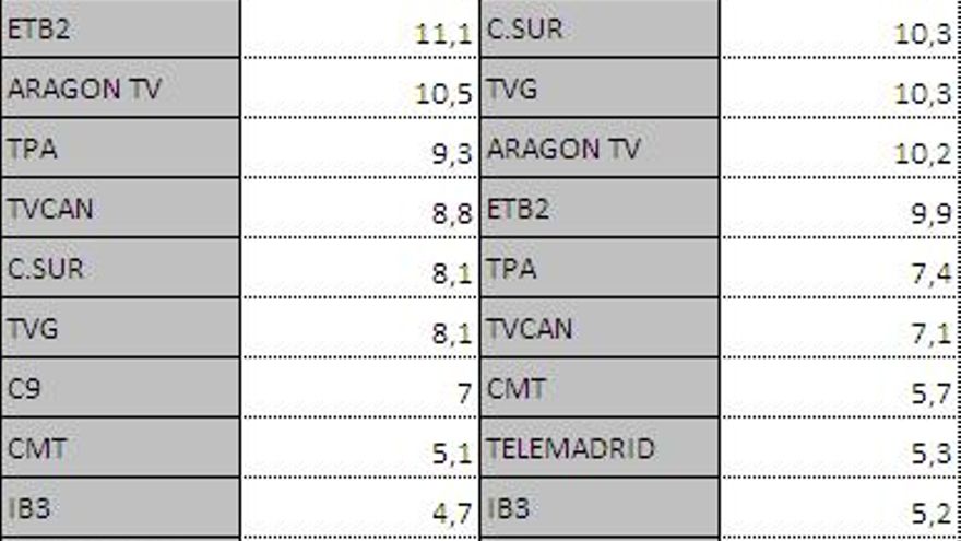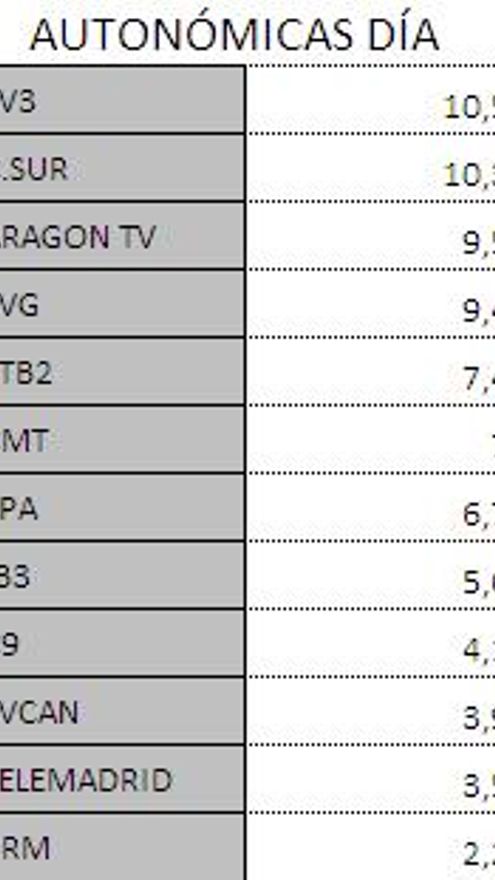 Audiencias autonómicas domingo 10 de junio