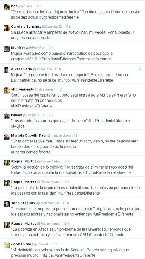 La entrevista al presidente uruguayo José Mujica no sólo reportó un gran resultado de audiencias a Salvados (16.6% y 3.147.000 espectadores, líder de su franja), sino que dejó una gran recopilación de frases que fueron muy comentadas en Twitter.