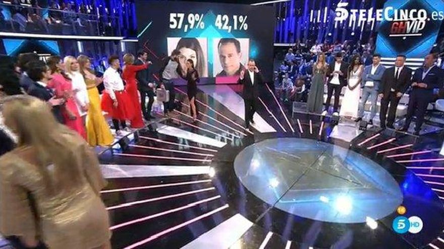Tras el completo repaso de su estancia en la casa de Guadalix, Jordi González anunciaba al ganador: “La audiencia ha decidido que el ganador o ganadora de 'GH VIP' sea Laura Matamoros”. “Con un 57,9% frente a un 42,1% de los votos”, informaba Jordi.
