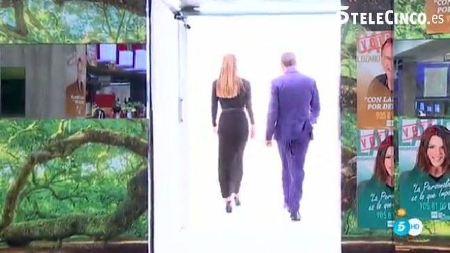 Jordi González presentaba a los finalistas, “ella con 23 años, él de 53, ella famosa por su padre, él con una larga trayectoria profesional...” y entraban ambos cogidos del brazo, con la “mala pata” de que Laura se resbaló y se cayó.