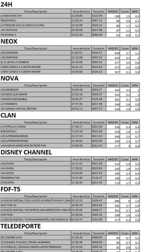 Audiencias TDT lunes 01/08/2016