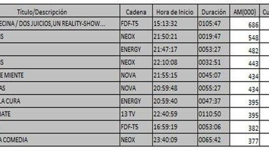 Los 10 programas más vistos del lunes en la TDT