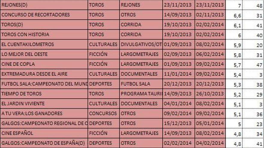 También cosechan buenas audiencias programas como “Rejones” o “Toros con historia”, que completan la vocación taurina de esta cadena autonómica.