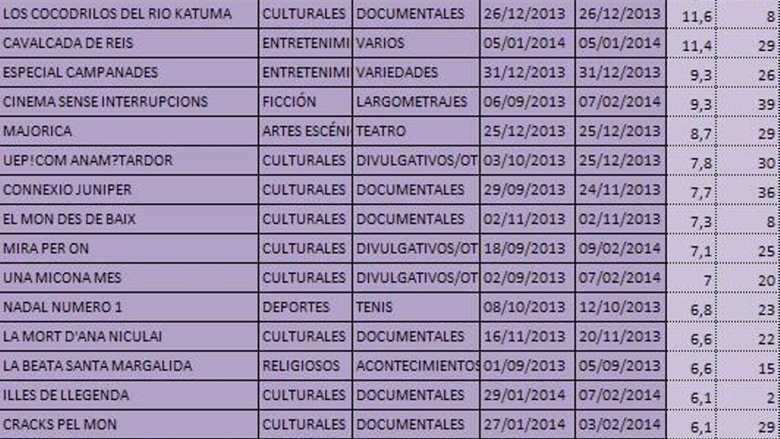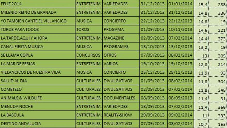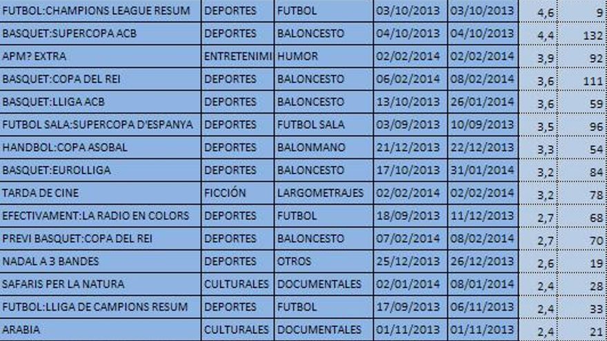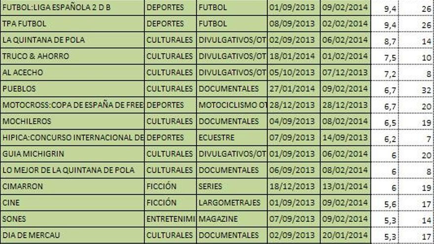 También tienen buenos datos sus programas de proximidad dedicados a eventos locales (Cabalgata de Reyes) y la emisión de los partidos de fútbol de la Liga Española (9.4%).