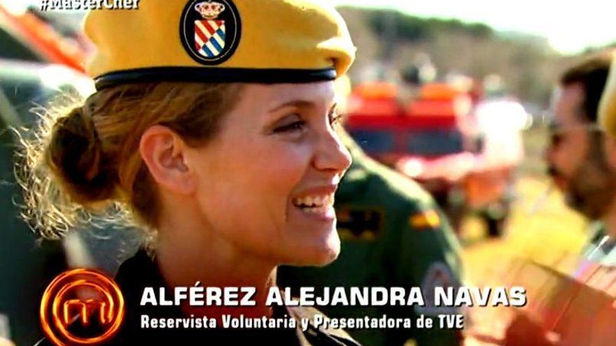Los concursantes tuvieron que cocinar para un total de 200 efectivos, entre los que encontramos una sorpresa. Y es que mediado el programa que emitió anoche La 1, Eva González se encontró con una compañera de cadena, Alejandra Navas, conocida por sustituir en períodos vacacionales a Anne Igartiburu y a Carolina Casado al frente de 'Corazón'.