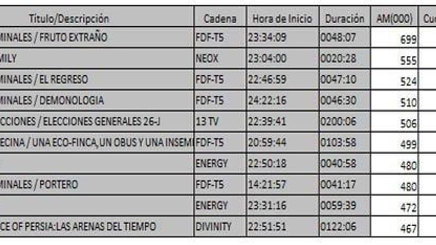 Los 10 programas más vistos del domingo en la TDT