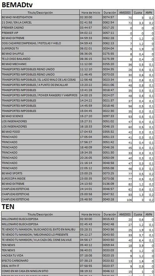 Audiencias completas nuevos canales de la TDT