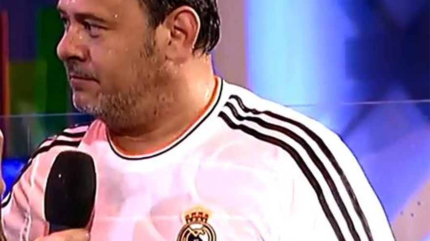 Miki Nadal se ha mojado por su Real Madrid. Ha defendido los colores en 'Zapeando' y ganó por goleada la guerra de agua a la atlética Natalia.