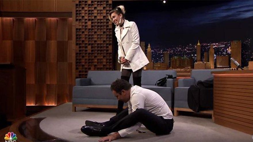 Miley Cyrus pone en aprietos a Jimmy Fallon con sus posturas de yoga más flexibles
