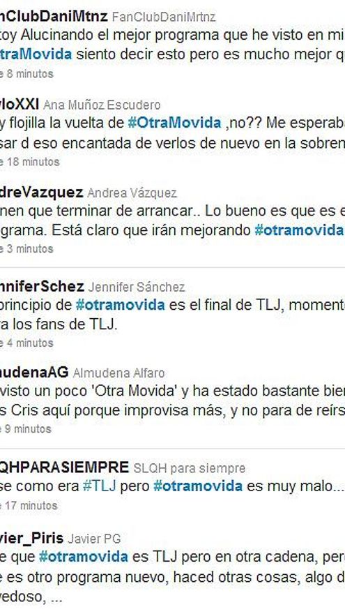 El estreno de Otra Movida no ha pasado desapercibido en Twitter, donde el recuerdo a Tonterias las justas ha convertido al antiguo programa de Cuatro en Trending Topic de España (#TLJ).