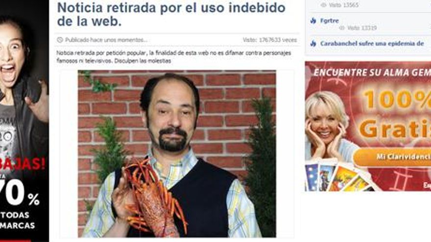 Tras el revuelo causado por la falsa noticia, la web se ha visto obligada a retirar la broma. Si un usuario intenta acceder ahora le aparece el siguiente mensaje: “Noticia retirada por el uso indebido de la web, a petición popular. Nuestra finalidad no es difamar a personajes famosos o televisivos. Disculpen las molestias.”