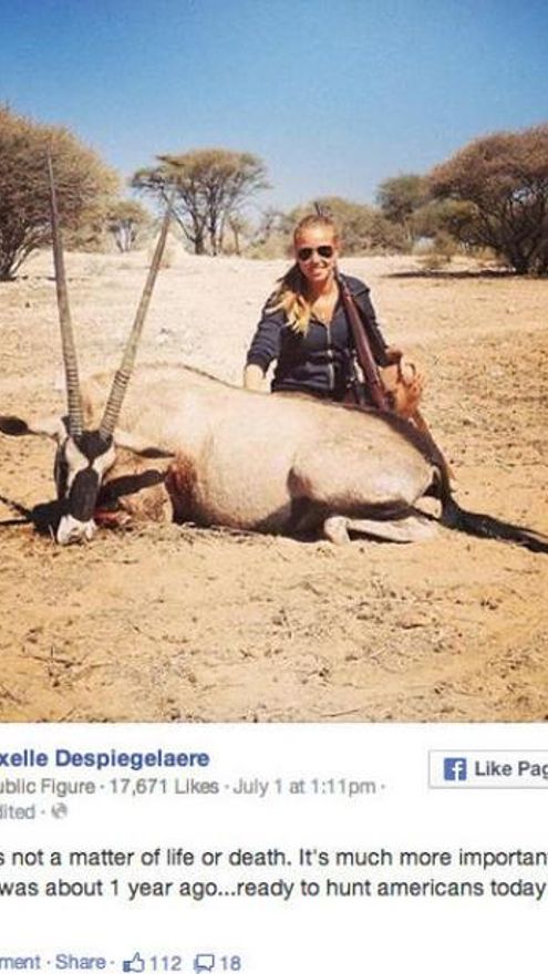 Se trata de una instantánea que la propia chica subió a su cuenta de Facebook en la que aparece, rifle al hombro, con un órix muerto a sus pies.