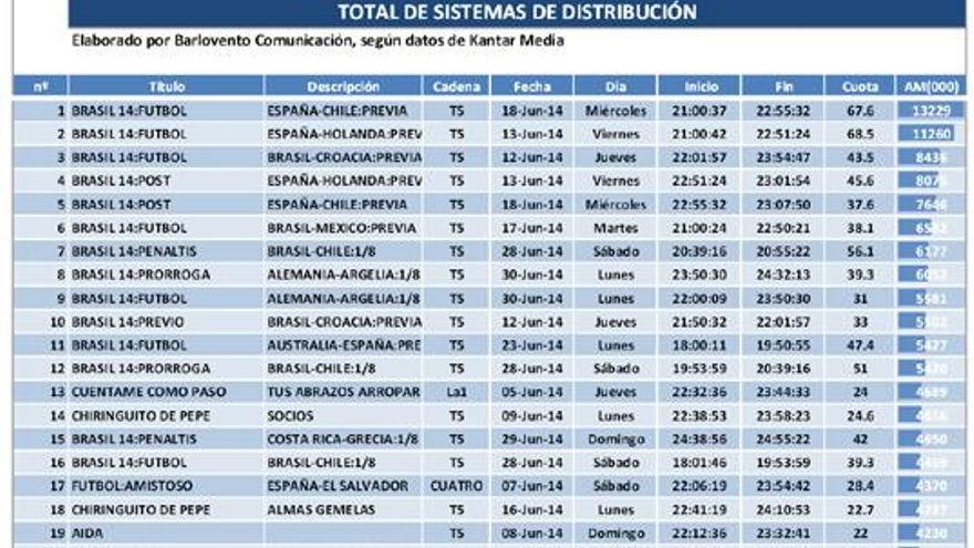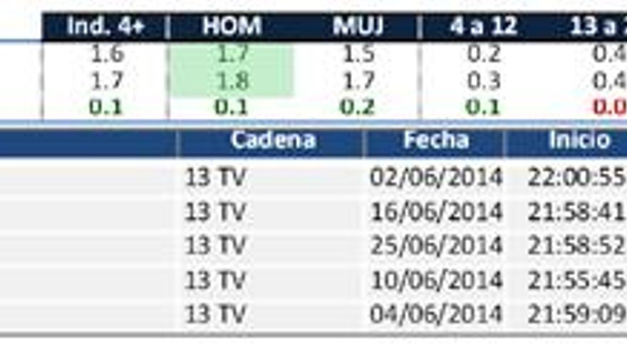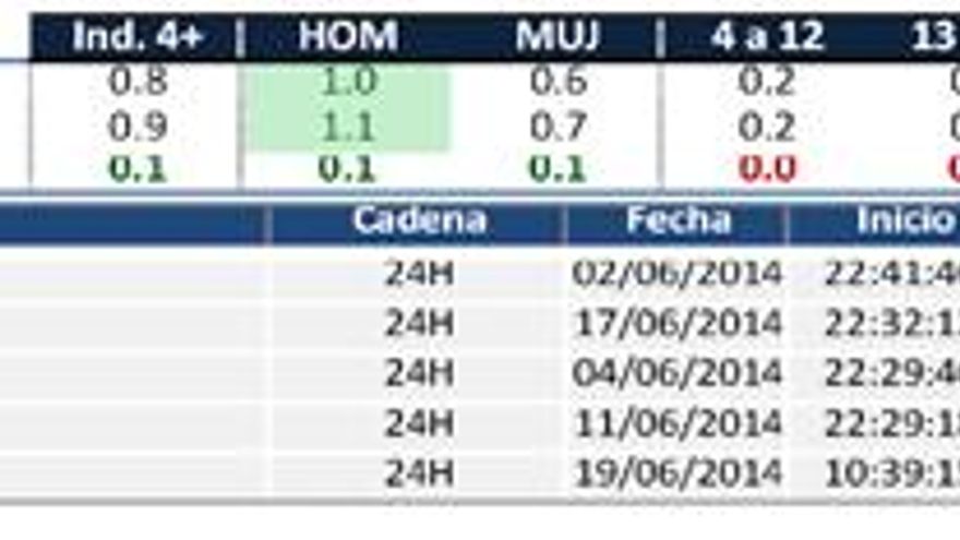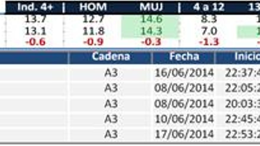 Este es el análisis de audiencias del mes de junio de 2014 elaborado por la consultora audiovisual Barlovento Comunicación: