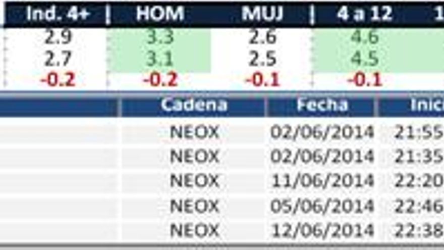 9.- Neox (2,7%) baja dos décimas