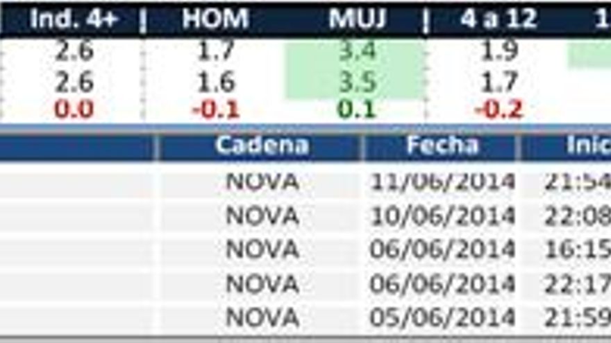 Nova (2,6%) repite el resultado de mayo cuando logró su máximo mensual. El perfil de la cadena es femenino y con fortalezas en el grupo de 25 a 44 años. Por franjas horarias, destaca en la tarde, la madrugada, así como en jornadas laborables. Lo más visto es “Una Maid en Manhattan”.
