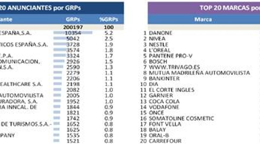 • Danone es la marca con más GRPs (5.042)
