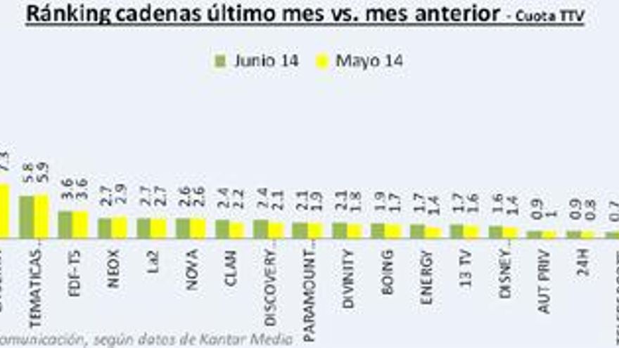 7.- El grupo de las Cadenas Temáticas de Pago (5,8%) baja una décima